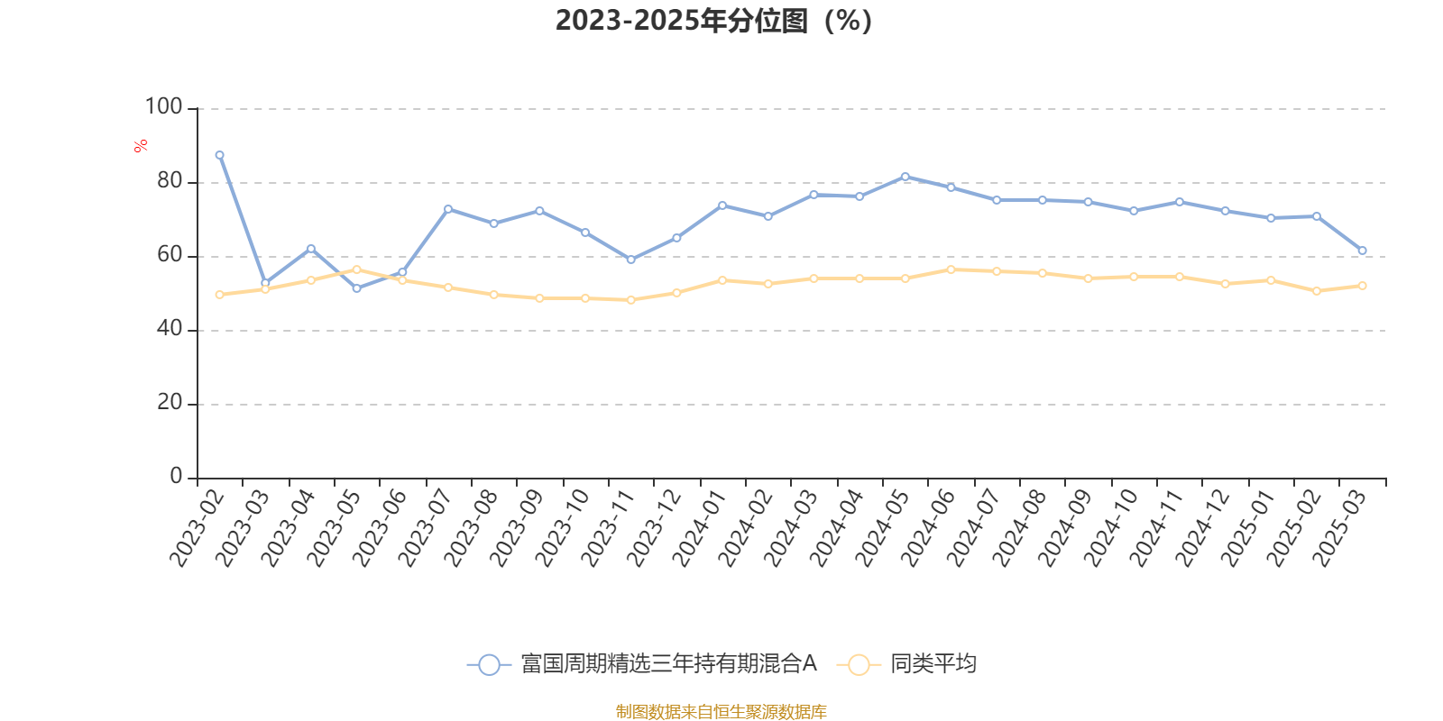 通过所选区间该基金净值增长率分位图,可以观察该基金与同类基金业绩比较情况。图为坐标原点到区间内某时点的净值增长率在同类基金中的分位数。